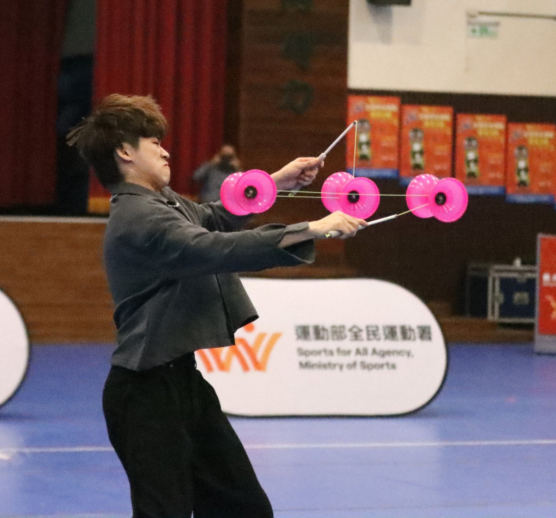 〔記者梁偉銘/綜合報導〕114年全國民俗運動匯演活動持續在台南大學進行,扯鈴公開組一對一對抗賽上演「台日激戰」,去年第2名的地主好手曹子宏技高一籌,最終擊敗來自日本的津田真叶,順利留下冠軍。